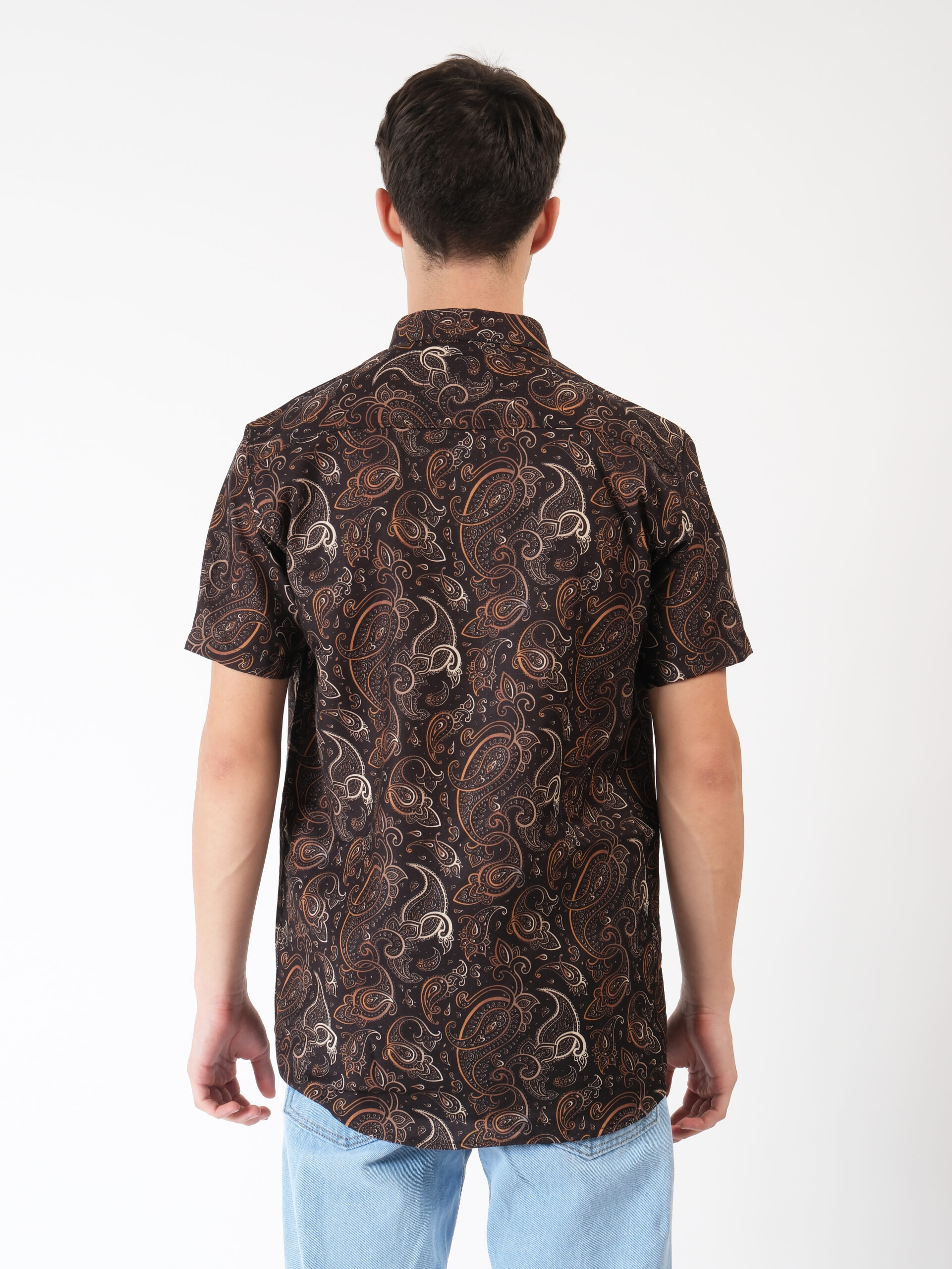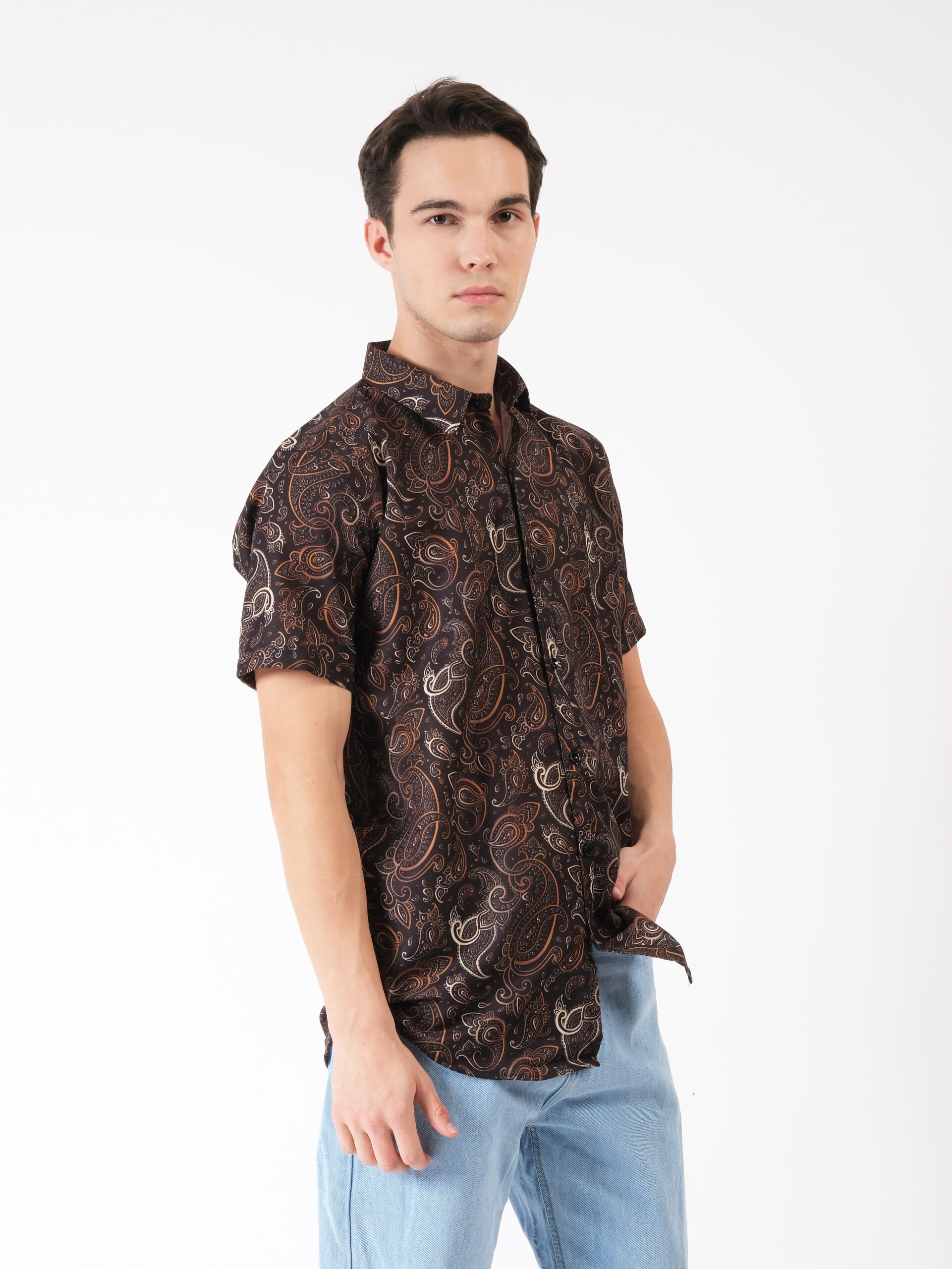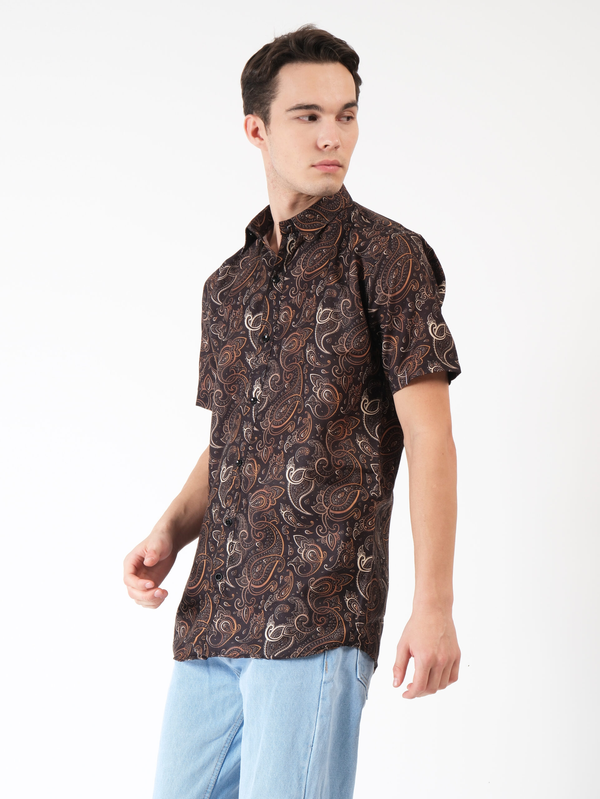 Timeless elegance with a royal twist — the Rajwadi Paisley Shirt is a Klevenchy Classic Half-Sleeve masterpiece inspired by India’s regal heritage. Its deep brown base is adorned with flowing paisley motifs in warm rust and ivory tones, creating a design that feels both traditional and refreshingly modern.